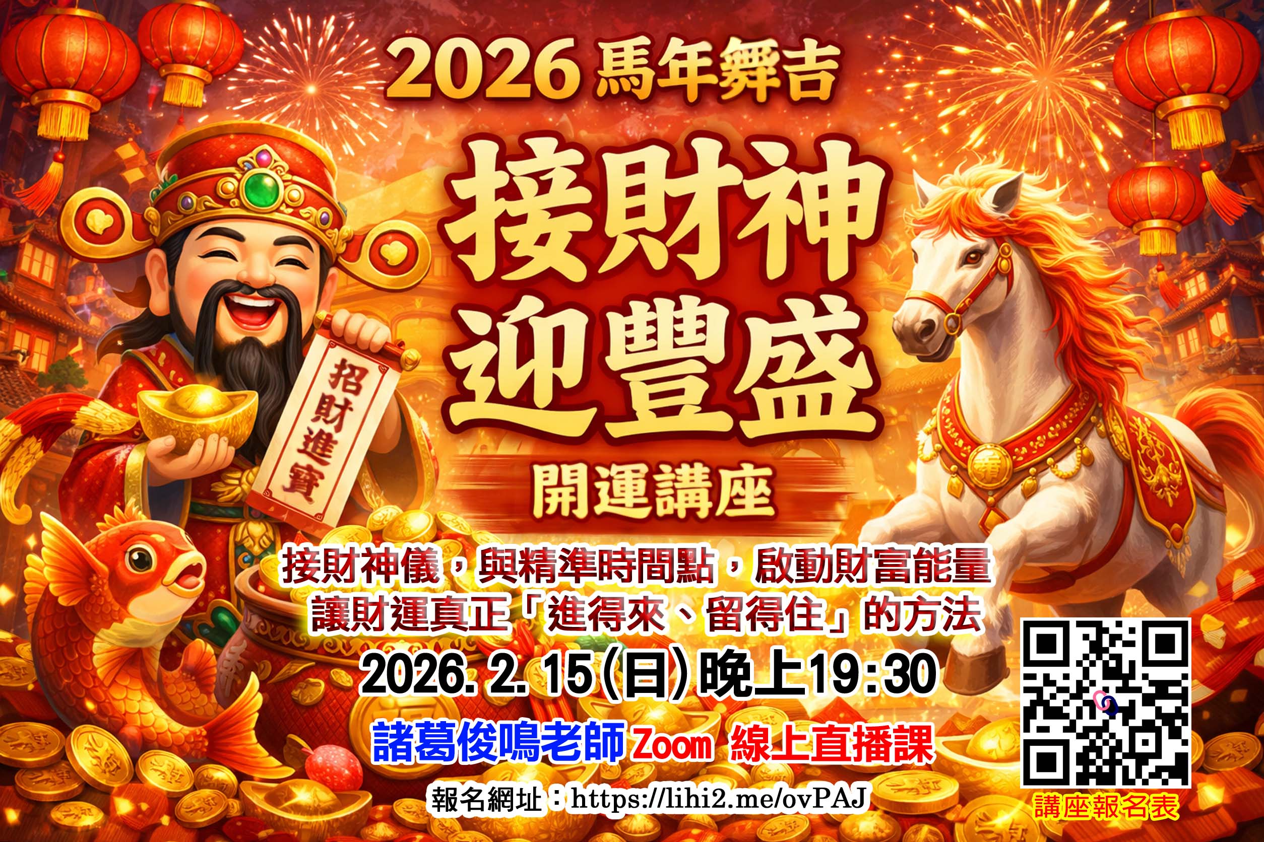 報名表連結:報名2026馬年舞吉|接財神迎豐盛開運講座 https://forms.gle/6cmDmGroitMxfQcK7