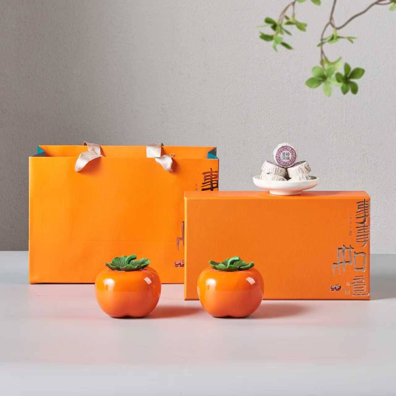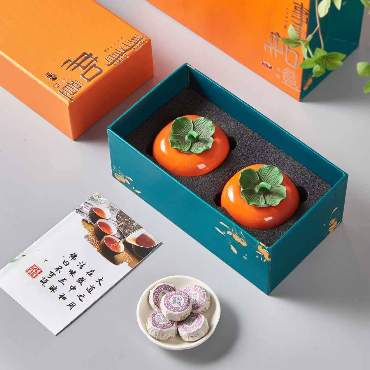 迷你柿子造型,小巧可愛、好意頭 沉香普洱溫和順口,日常品茗無負擔 雙罐設計象徵好事成雙,送禮分享剛剛好,訂購十盒以上九折優惠